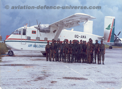 ![]() Ronnie Pereira and Noel Lokuge inside the CV440 cockpit | ![]() The Flying Fish | ![]() Left: Paddy Mendis, Center: Sakyasena Atukorale, 2nd from right: Noel Lokuge posing by AM10 |